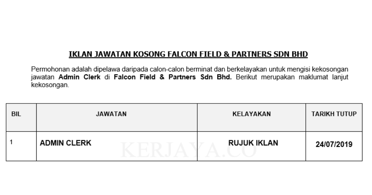 Falcon Field & Partners Sdn Bhd • Kerja Kosong Kerajaan