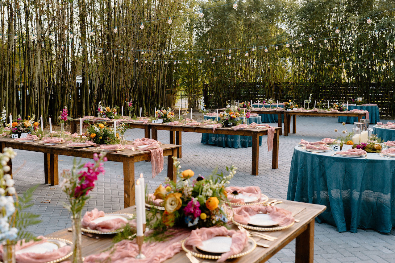 Large Outdoor Wedding Reception Space with Round and Rectangular Tables ...
