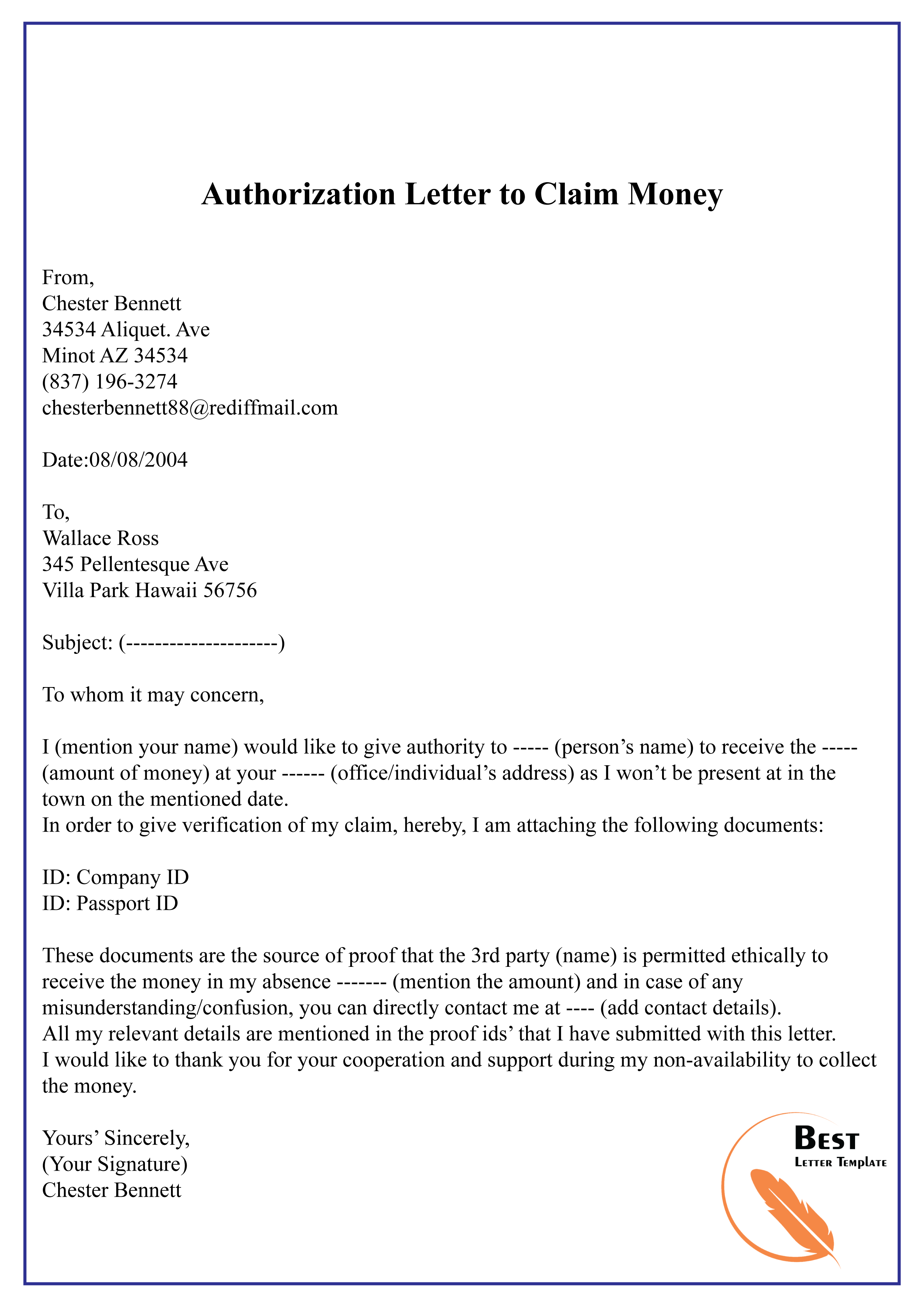 Authorization Letter to Claim Money-01 – Best Letter Tem…
